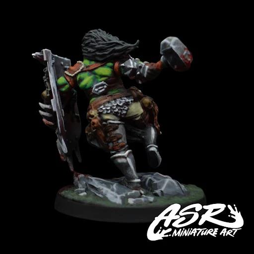 Sharn embodies reliability. What she lacks in the ability to inflict massive damage, she makes up for in her staying power and her innate abilities to move friends and foes without using valuable fate resources. With her bulk clad in the heaviest of armour, she can be relied on to withstand all but the most focused attacks while providing allies Cover. With the ability to rally friends to her and slam her foes forward, both without leveling, her natural tools lend to many interesting movement strategies that are a boon to players who enjoy unraveling puzzles to set up clutch plays. As she levels, enemies have to decide between smashing themselves whilst charging her or shooting her as she becomes more indomitable against the deadliest of projectiles. Her hammer, Storm Forged, is also designed to penetrate the strongest of armours while throwing foes that stand close, dismantling carefully laid out formations. Although not specializing in soul harvesting, Sharn is attuned to the spiritual principle that permeates all realities, providing a warband with soul harvesting support.