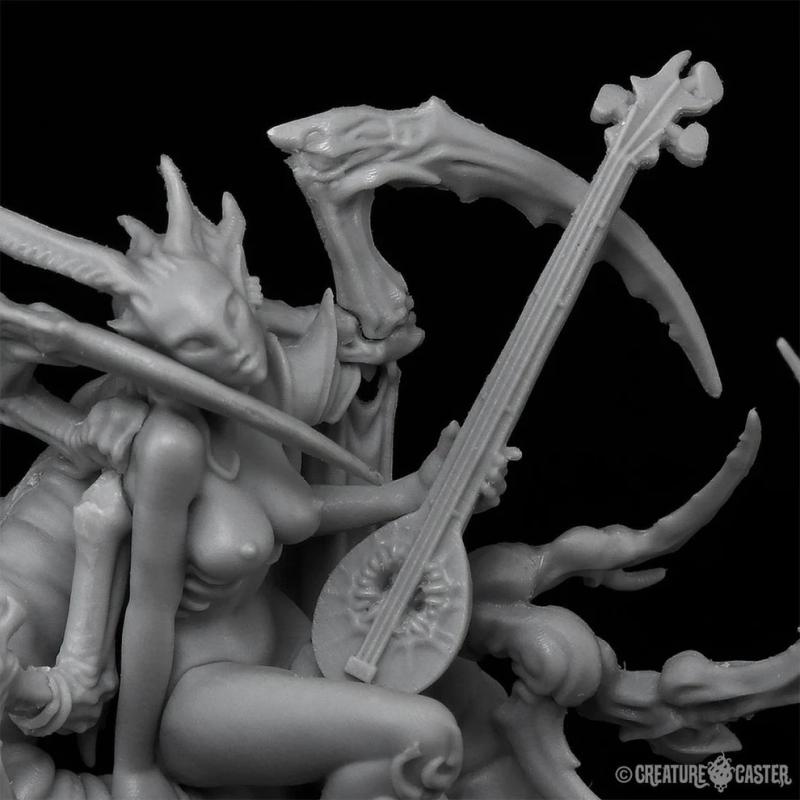 The disturbing beauty of the Sirens is evident not only in their appearance, but in the symphonies that they produce. Bonded with monstrous demonic wurms, whatever melody the Siren plays is accompanied by a sonic wave that their wurm can generate by vibrating it’s vocal cords at incredible speeds. The result of their symbiosis is a surprisingly beautiful and haunting way to cause an enemy’s lungs to collapse, or burst every blood vessel in their bodies.