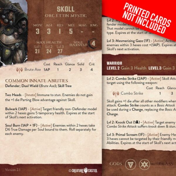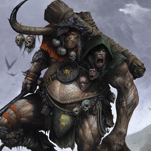 Occasionally, the two heads get along, have a common cause, and work together to achieve common goals. These are by far the most powerful, respected and feared ettins. One such ettin is Skoll Bonestorm, who has grown in stature over decades among the orc tribes. You would be hard-pressed to find an orc alive that does not know of Skoll, or who couldn’t regale stories of his exploits in great detail. For Skoll is an example of what can be achieved when an ettin’s heads are in complete unison. Skoll is also the first of his kind to be summoned to Between, the 1st chosen, which has only increased his powers and renown.
