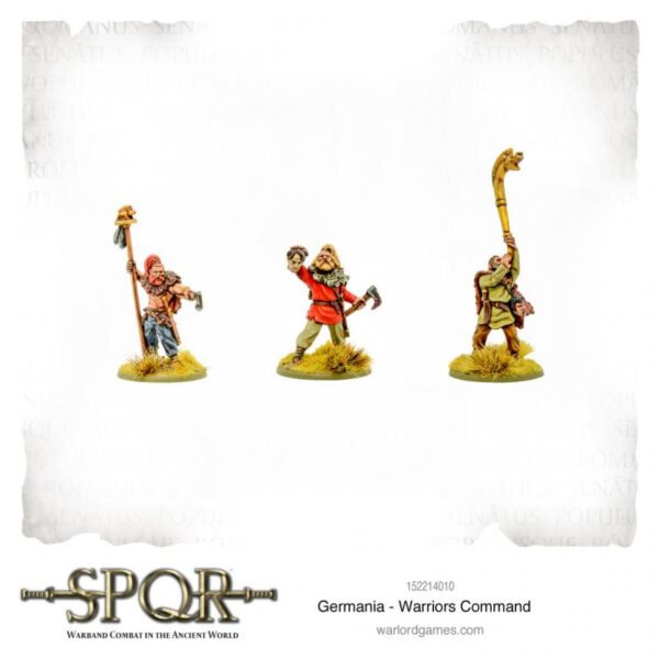 Contains a musician and standard bearer to provide combat bonuses to units of Warriors. A leader hoists his latest trophy, an ideal sculpt as an alternative hero for your force – potentially a supplementary lightly armed hero to lead the warriors into the fray.