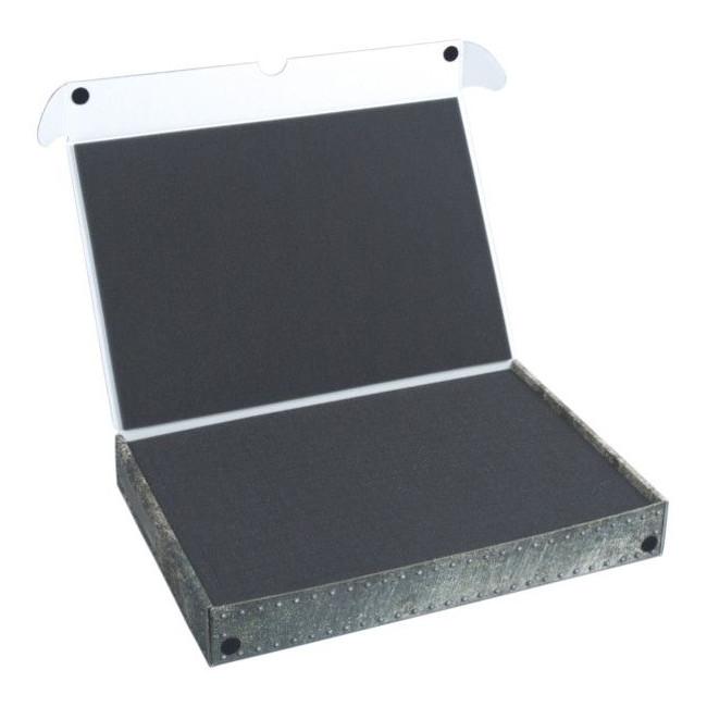 The presented product is a Full-size Standard Box with a raster foam tray which can be used to customise the storage space for miniatures of irregular shape or with bits that stand out.