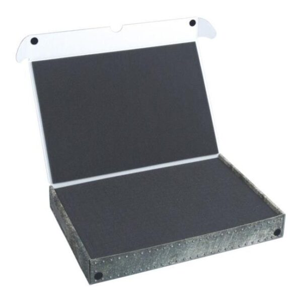 The presented product is a Full-size Standard Box with a raster foam tray which can be used to customise the storage space for miniatures of irregular shape or with bits that stand out.