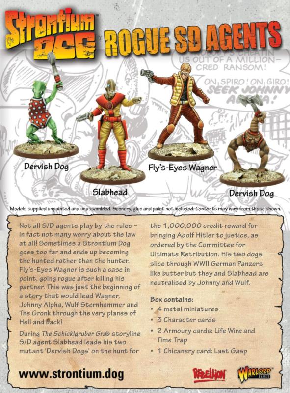 During The Schicklgruber Grab storyline S/D agent Slabhead leads his two mutant ‘Dervish Dogs’ on the hunt for the 1,000,000 credit reward for bringing Adolf Hitler to justice, as ordered by the Committee for Ultimate Retribution. His two dogs slice through WWII German Panzers like butter but they and Slabhead are neutralised by Johnny and Wulf.