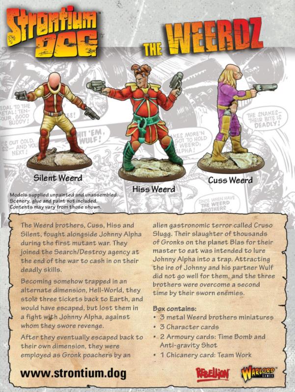 The Weerd brothers, Cuss, Hiss and Silent, fought alongside Johnny Alpha during the first mutant war. They joined the Search/Destroy agency at the end of the war to cash in on their deadly skills.