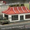 Includes one pre-painted Fast Food Restaurant building, including one ground-floor section and one roof section.