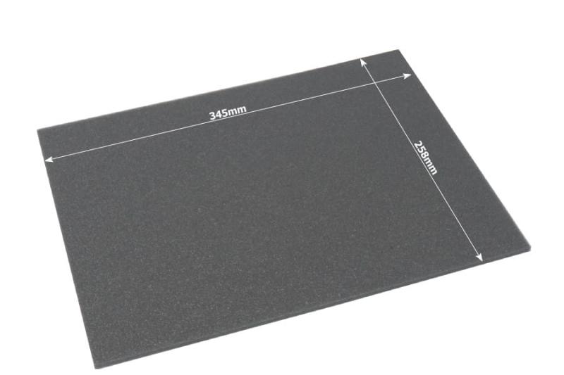 The foam tray has dimensions of 345mm x 258mm x 10mm and fits the narrowing lid of the old case.
