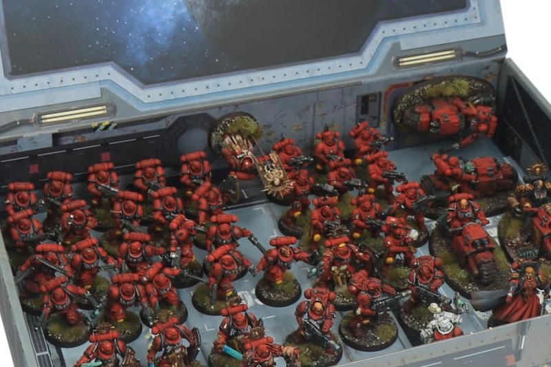 This box is also equiped with an additional metal plate attached to the inner back side of the box. This plate inreases a carrying capacity of the box and also allows for carrying a few miniatures that are higher than 70mm like liders or standard-bearers.