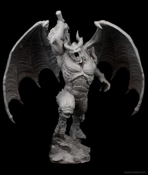 Warrior Demon is an armoured berserker who lives only for battle. His “demorganic” (demon + organic) armour grows from a calcified and warped skeleton to protrude through his skin. These armoured areas take on skull-like shapes, which are twisted and bound together to form nightmarish plating. While easily able to tear foes apart with just his bare hands, Warrior Demon prefers to hack enemies apart with his massive sword/axe hybrid. Legends say that this weapon was once a mighty demon, in its own right, before it fell to Warrior Demon. In order to escape its fate, the defeated foe transformed into the one thing that would prove too valuable to be destroyed. This lesser demon intended to escape once his captor tired. However, the Warrior Demon does not know the meaning of rest. He flies from battle to battle on massive wings–an unyielding monster–bringing only death.