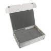 - 1 x 40mm deep raster foam tray and 1 x foam tray (267mm x 197mm) with 20 compartments, each 50mm x 25mm x 25mm in second half of box;