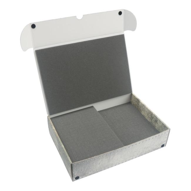 - 1 x 12mm thick foam layer adhered to the inside lid protecting the top of the miniatures;