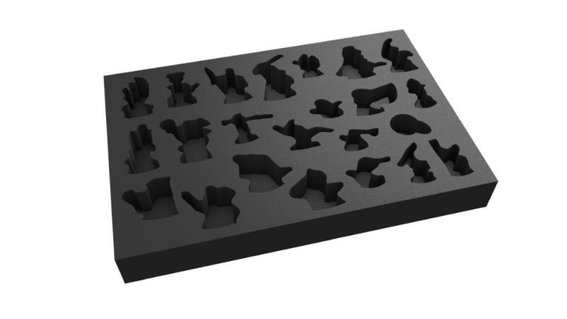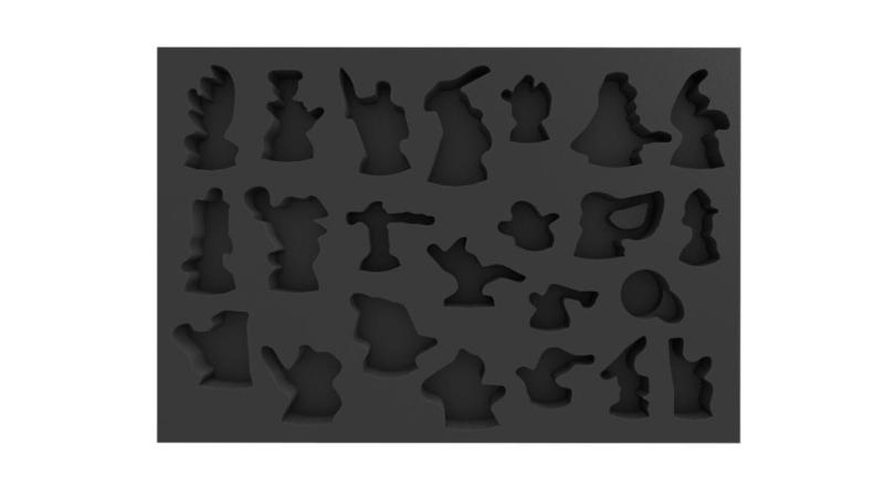 - 1 x 6mm thick foam layer adhered to the inside lid protecting the top of the miniatures;